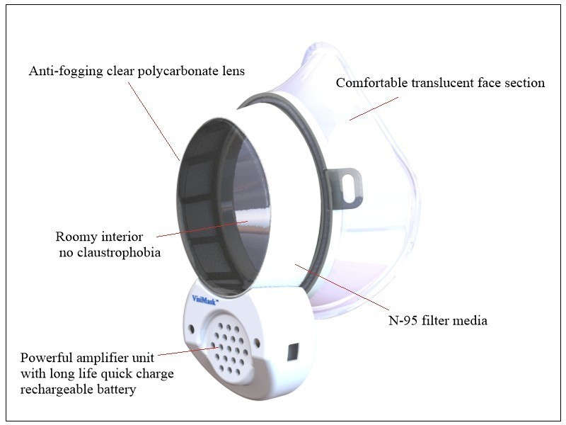 It's MaskFonix speaker amplifies the wearer’s voice with excellent clarity. A rechargeable battery and replaceable lens/ filter assembly ensure that you will have VisiMask for a long time.